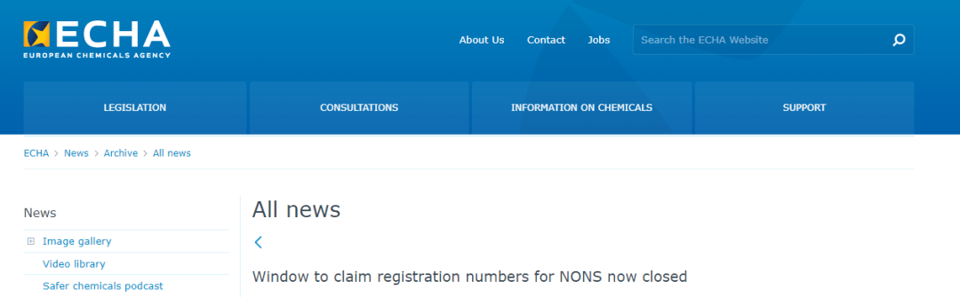 在2008年欧洲化学品管理局(ECHA)就已经为根据危险物质指令通报的所有物质分配了注册号,以供REACH法规下的注册人使用,并要求企业必须在今年7月17日之前申领分配给其的新物质通报(NONS)注册号。