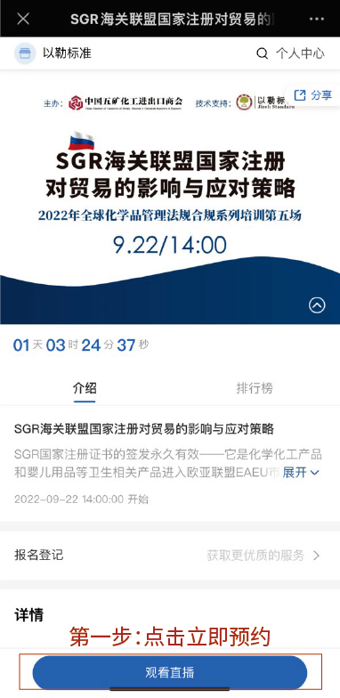 报名倒计时!明天下午2点,以勒标准联合五矿商会共同举办的全球化学品管理系列法规的第五场——SGR海关联盟国家注册对贸易的影响与应对策略正式开讲!