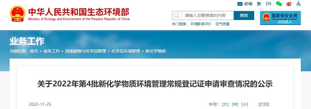 ▌2022年第4批拟批准的新化学物质环境管理常规登记证明细表