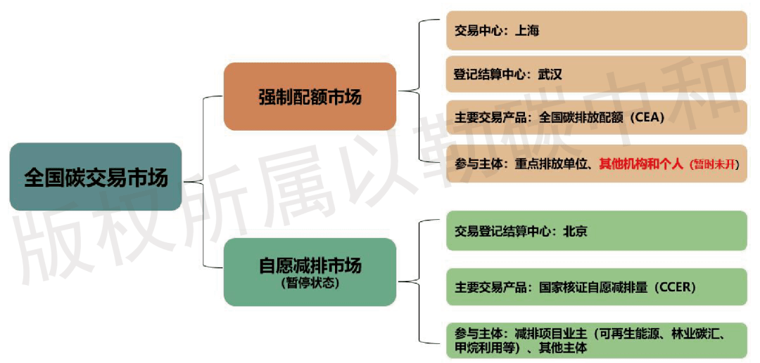 强制市场指的是全国碳排放权交易市场,交易的配额产品为CEA(Chinese Emission Allowance),是政府分配给重点排放单位(石化、化工、建材、钢铁、有色、造纸、电力、航空八大重点行业被纳入到碳排放权交易的范围,目前纳入全国碳市场的只有电力行业)的碳排放额度,这些单位拥有政府分配的碳配额且需要在规定时间内完成配额清缴(碳排放履约)。